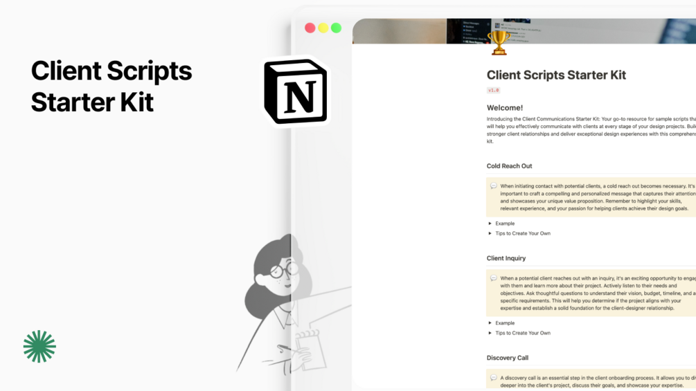 Gain access to a diverse collection of sample scripts for various client interactions, including onboarding, project updates, feedback sessions, and more.