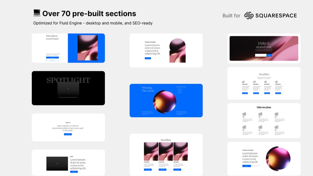 - 💻 Over 70 pre-built sections in Fluid Engine are optimized for desktop and mobile, and SEO